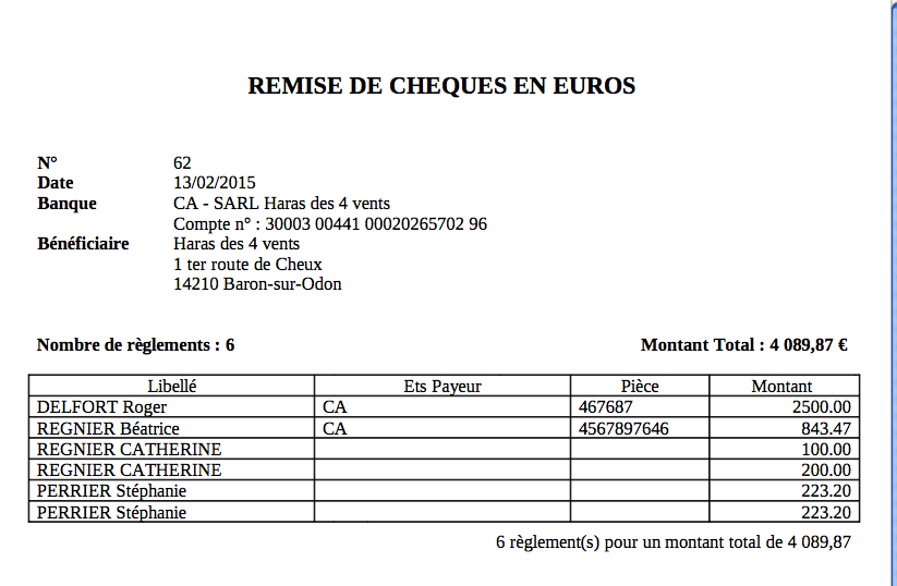 Gérez directement vos bordereaux de remise en banque à partir d’O-Haras.